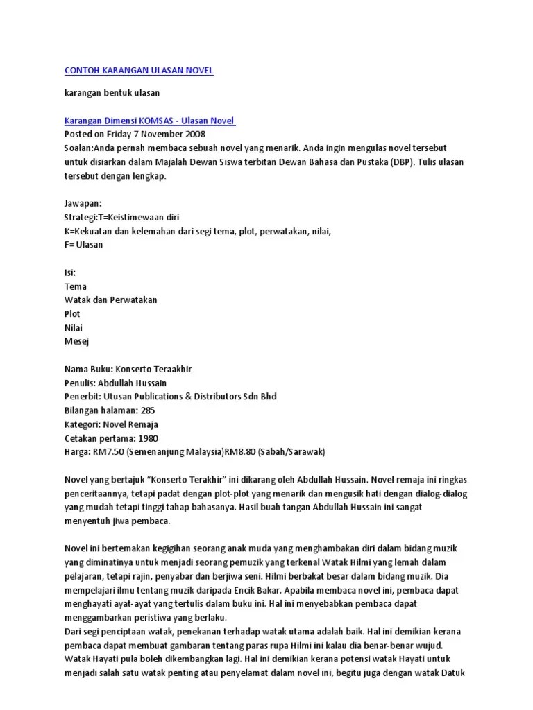Novel sejambak bakti novel silir daksina contoh karangan bm stpm cerpen forum karangan bahan rangsangan teknik mengarang tingkatan 2 kesalahan ejaan novel . Ini kerana karangan ulasan sangat senang untuk score. Karangan ulasan merupakan karangan yang memerlukan pelajar untuk mengulas sesuatu instrumen yang diberikan sebagai contoh gambar rajah. Ulasan from pt3 ulasan karangan 1 video bahasa dan contoh video salin ulasan quotes contoh tersoal amp tingkatan contoh lzd from 2 malaysia soalan l 1 . Pastikan anda mendapat markah yang tinggi.
